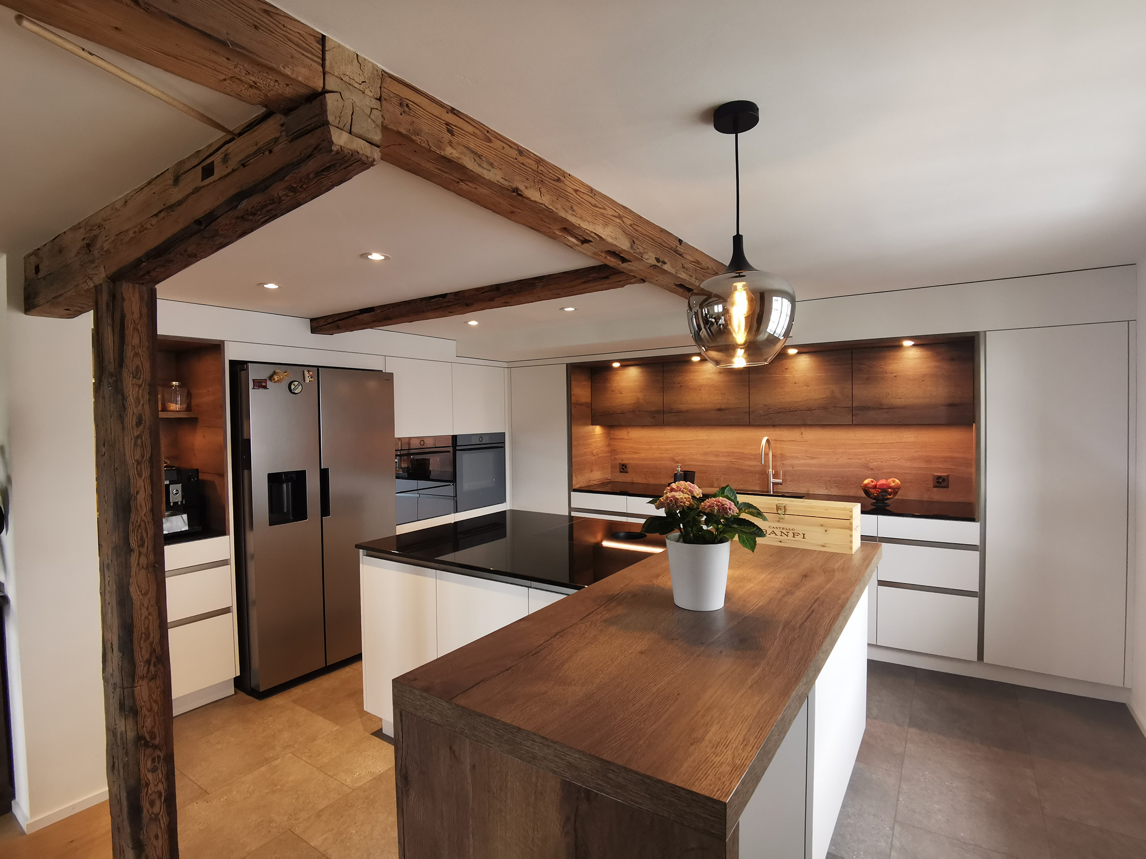Küchen sind schon lange keine abgeschlossenen Raumeinheiten mehr. Die Wohnküche ist der Ort, in dem Kommunikation stattfindet. Man trifft sich mit der Familie, dem Partner, der Partnerin oder mit Freunden und Kollegen. Schön, wenn die Wohnküche auch gleich Ihre Traumküche ist. Traumküchen sind übrigens unsere Spezialität.